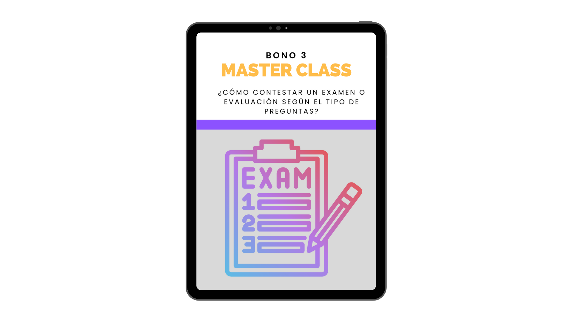 🎁 Bono de Regalo 3: Máster Class ¿Cómo contestar una evaluación según el tipo de preguntas?. USD $ 22