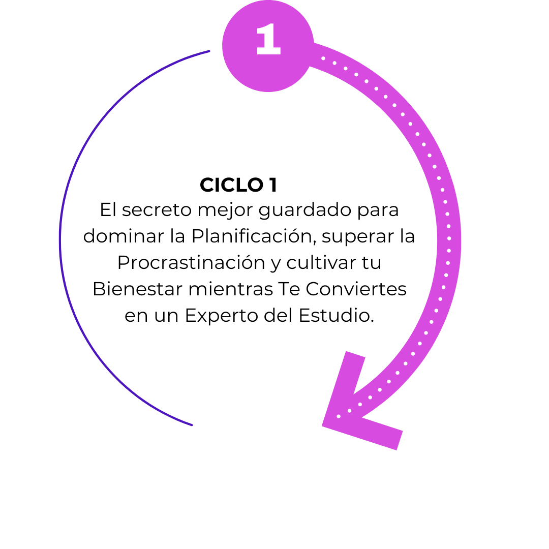 En el primer Ciclo, aprenderás la importancia de una planeación efectiva, hábitos de autocuidado e identificaras claramente por qué procrastinas y cómo superarla.